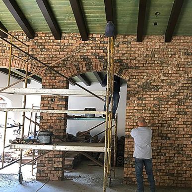 Veneer is a nonstructural facing of brick, stone, concrete masonry or other masonry material securely attached to a wall or backing. Veneers provide the exterior wall finish and transfer out-of-plane loads directly to the backing, but they are not considered to add to the load-resisting capacity of the wall system.